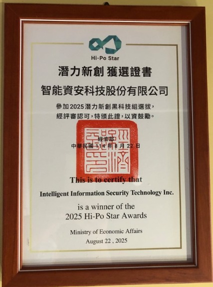 🎉 IIST智能資安科技公司榮獲《Taiwan Startup World Cup 2025》及 經濟部中小及新創企業署2025「潛力新創選拔」《2025潛力黑科技組-潛力新創》雙項殊榮!